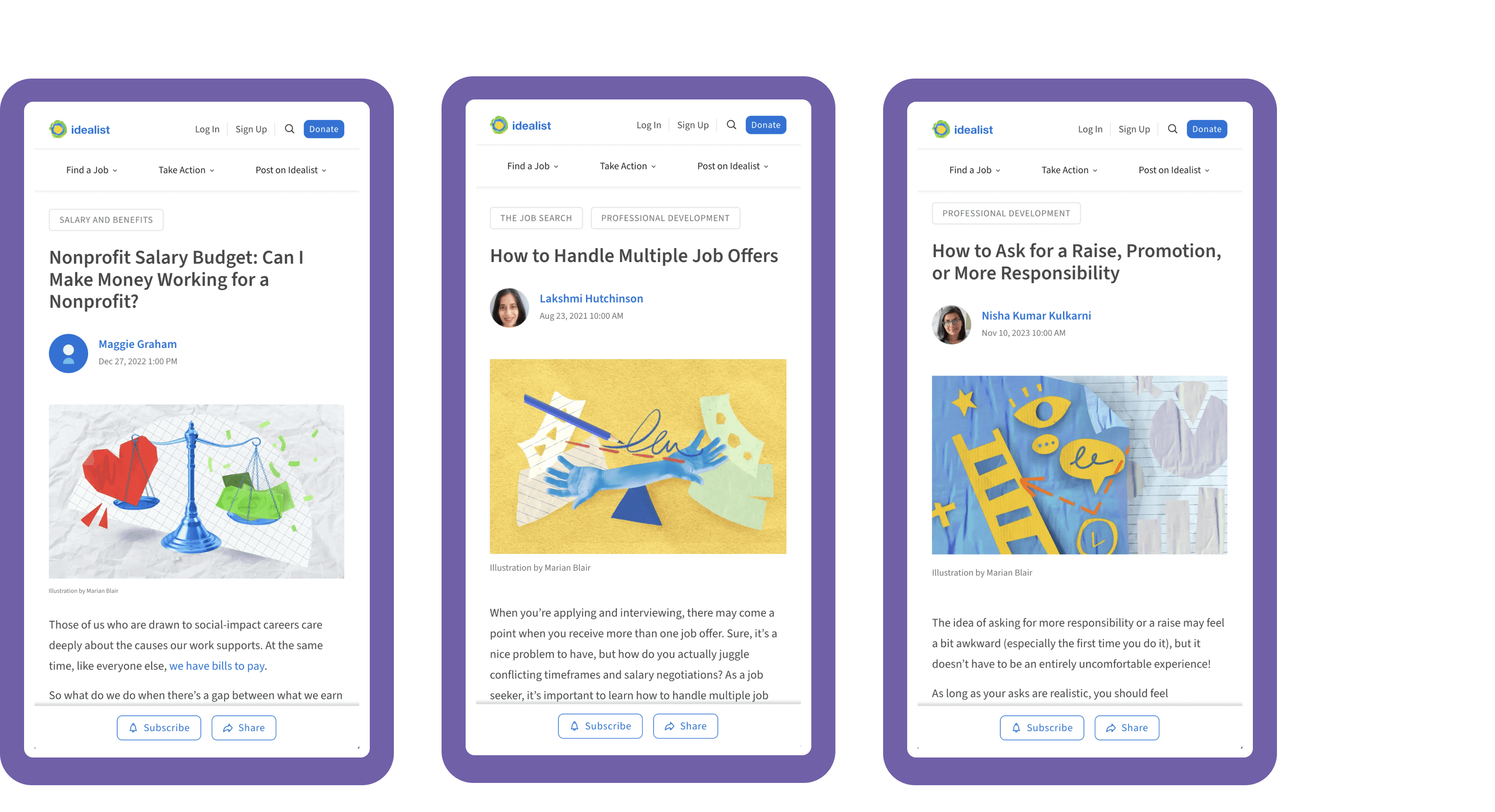 I created a three-part experience that helps users understand salary ranges, compare roles, and explore potential career paths built on a robust non-profit job title database based on years of research.