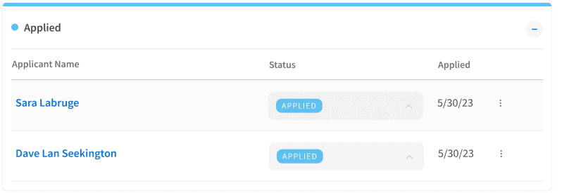 Employers can quickly scan recommended resumes, sort by status, and understand candidate history without relying on external spreadsheets or manual tracking.